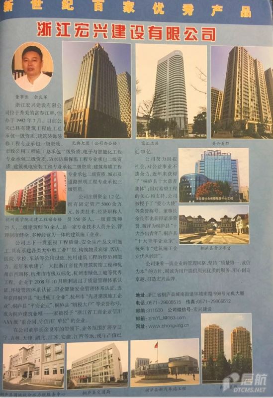 浙江宏興建設有限公司 地址:桐廬縣環城南路598號光典大廈19樓 郵編:311500 電話:0571-29605515 傳真:0571-29605515 郵箱:zjhxYLJ@163.com 網址:http://m.hzxxqp.com