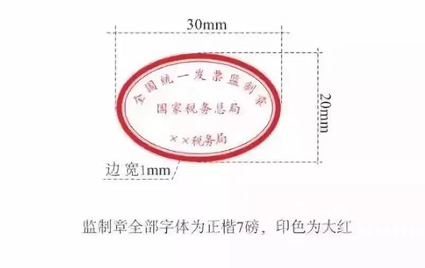 新啟用的發(fā)票監(jiān)制章形狀為橢圓型,長軸為3厘米,短軸為2厘米,邊寬為0.1厘米,內(nèi)環(huán)加刻一細(xì)線,上環(huán)刻制“全國統(tǒng)一發(fā)票監(jiān)制章”字樣,中間刻制“國家稅務(wù)總局”字樣,下環(huán)刻制“××省(區(qū)、市)稅務(wù)局”字樣,下環(huán)字樣例如:“上海市稅務(wù)局”。字體為楷體7磅,印色為大紅色。