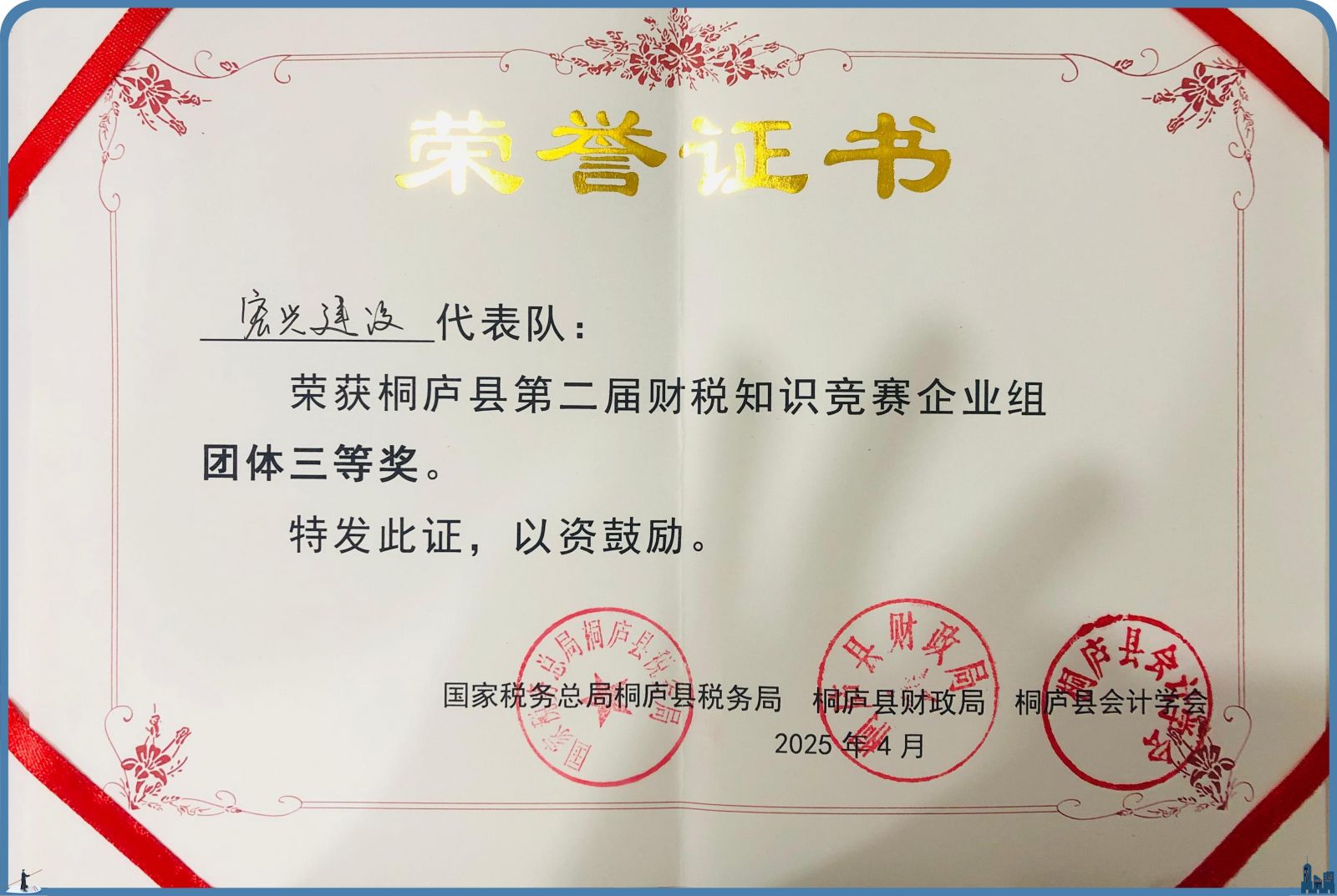 2025年4月25日,由國家稅務總局桐廬縣稅務局、桐廬縣財政局與桐廬縣會計學會聯合主辦的“桐廬縣第二屆財稅知識競賽”在桐廬縣廣播電視臺圓滿舉行。本次競賽以“深入宣傳財稅政策,進一步濃厚財稅知識學習氛圍”為主旨,通過競賽形式提升財稅專業素養,推動區域財稅政策落地與企業發展深度融合。